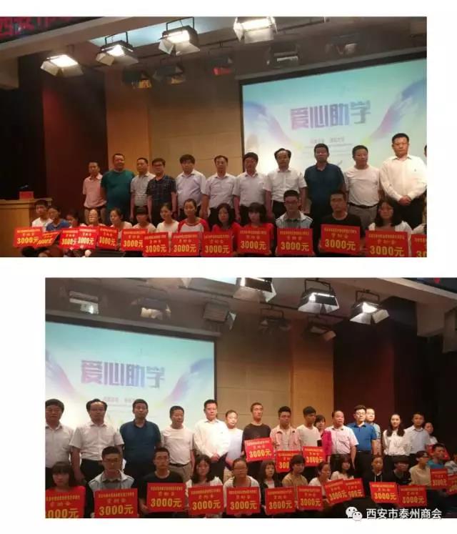 8月25日,西安市泰州商会资助咸阳市贫困大学生资助金发放仪式在旬邑县中学举行。